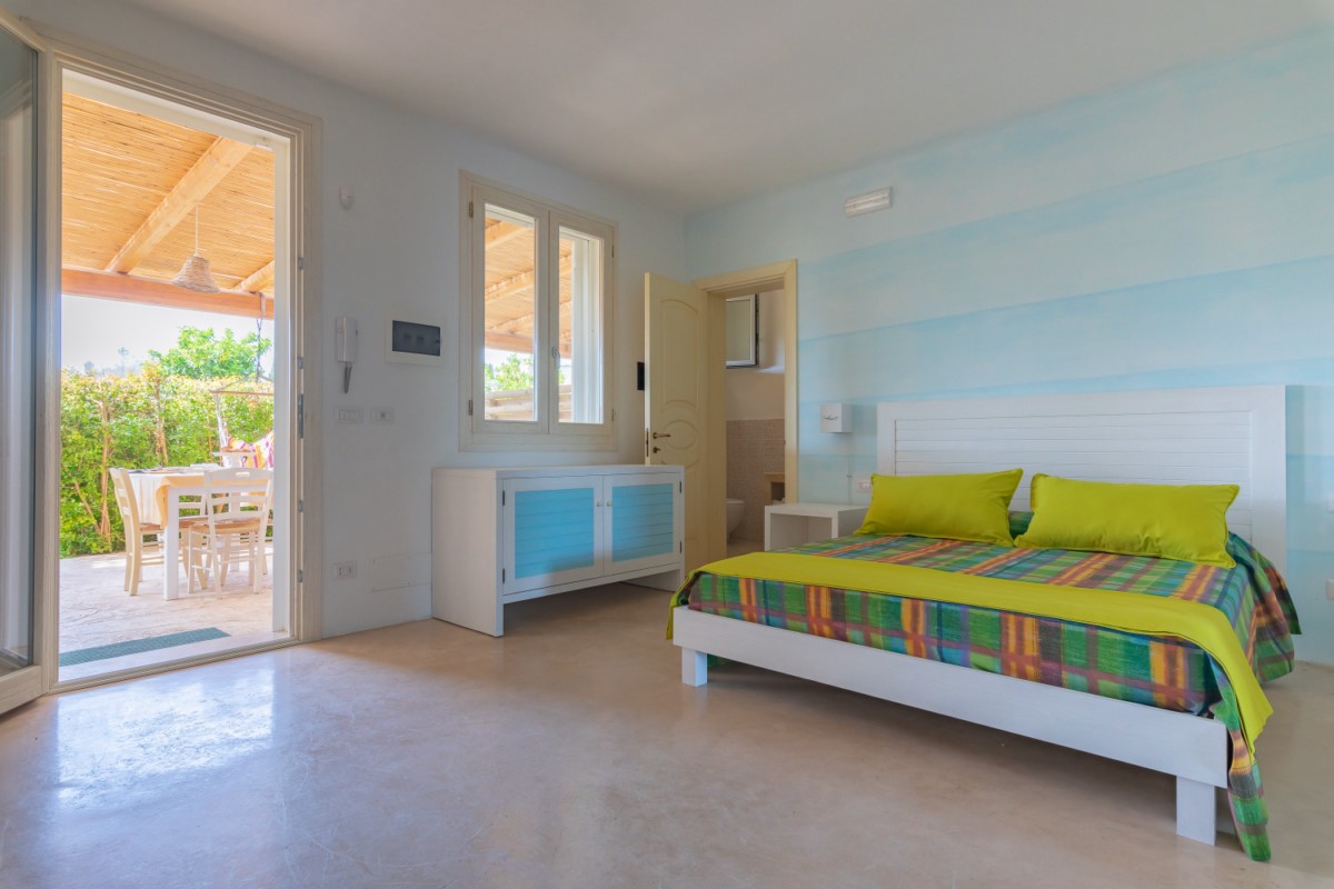 The structure has 2 studio apartments sleeping 4, all located on the ground floor. Each studio apartment has its own external veranda for exclusive use equipped with table, chairs, deckchairs and hammock to relax in complete tranquility.