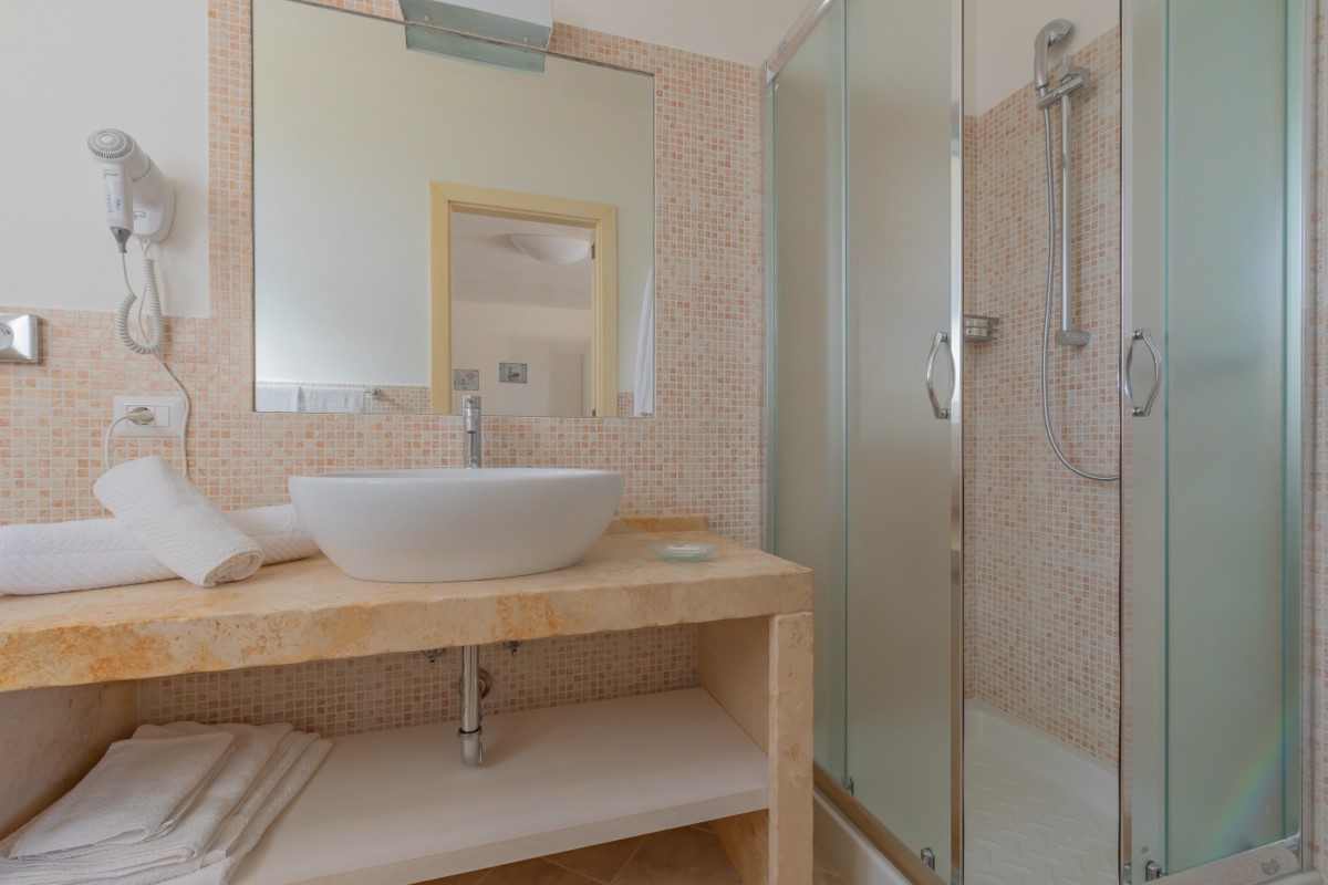 The Residence is immersed in 4,500 m2 of Mediterranean scrub typical of the area. The entire structure is completely fenced and under video surveillance to guarantee guests a peaceful stay. At the entrance to the Residence we find a reception station completely dug into the rock of the Quarry. At guests' disposal there is a beautiful infinity edge swimming pool, approximately 18 x 11 metres, with waterfall, relaxation area equipped with sun loungers, umbrellas, tables, chairs and bathroom. Outdoor showers are available both in the pool area and near the apartments. We also find a laundry area with sink and coin-operated washing machine for common use by all guests. To brighten up the evenings, a barbecue area has been designed with everything needed for outdoor grilling, tables, benches for eating and BBQ equipment available to all guests. There is also a large play area for children, equipped with a swing, slide, carousels, table tennis and table football for the entertainment of the little ones. Adjacent to all these outdoor spaces for common use there is a chicken coop where each guest can freely choose to use it. Internal parking area with access to the structure via an automatic gate. The customer will be able to access and exit the structure in total autonomy with key and remote control. Each apartment is also equipped with an intercom. Bicycles available at the reception for free use.