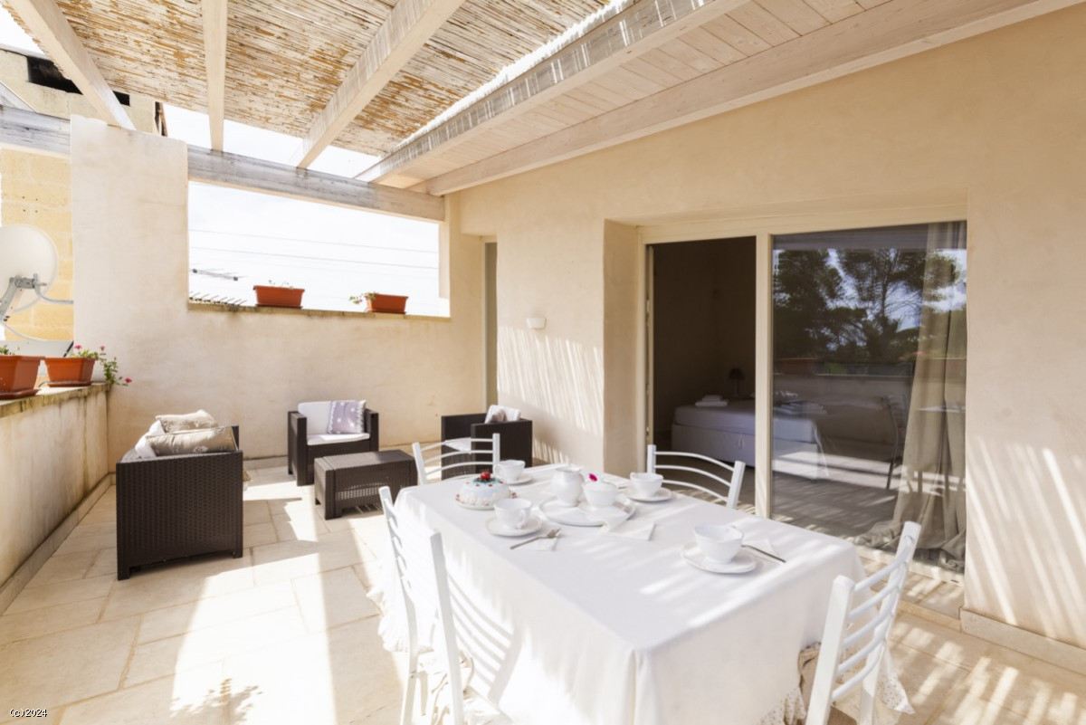 The elegant furnishings blend seamlessly with the warmth of Salento style, creating bright and welcoming spaces.