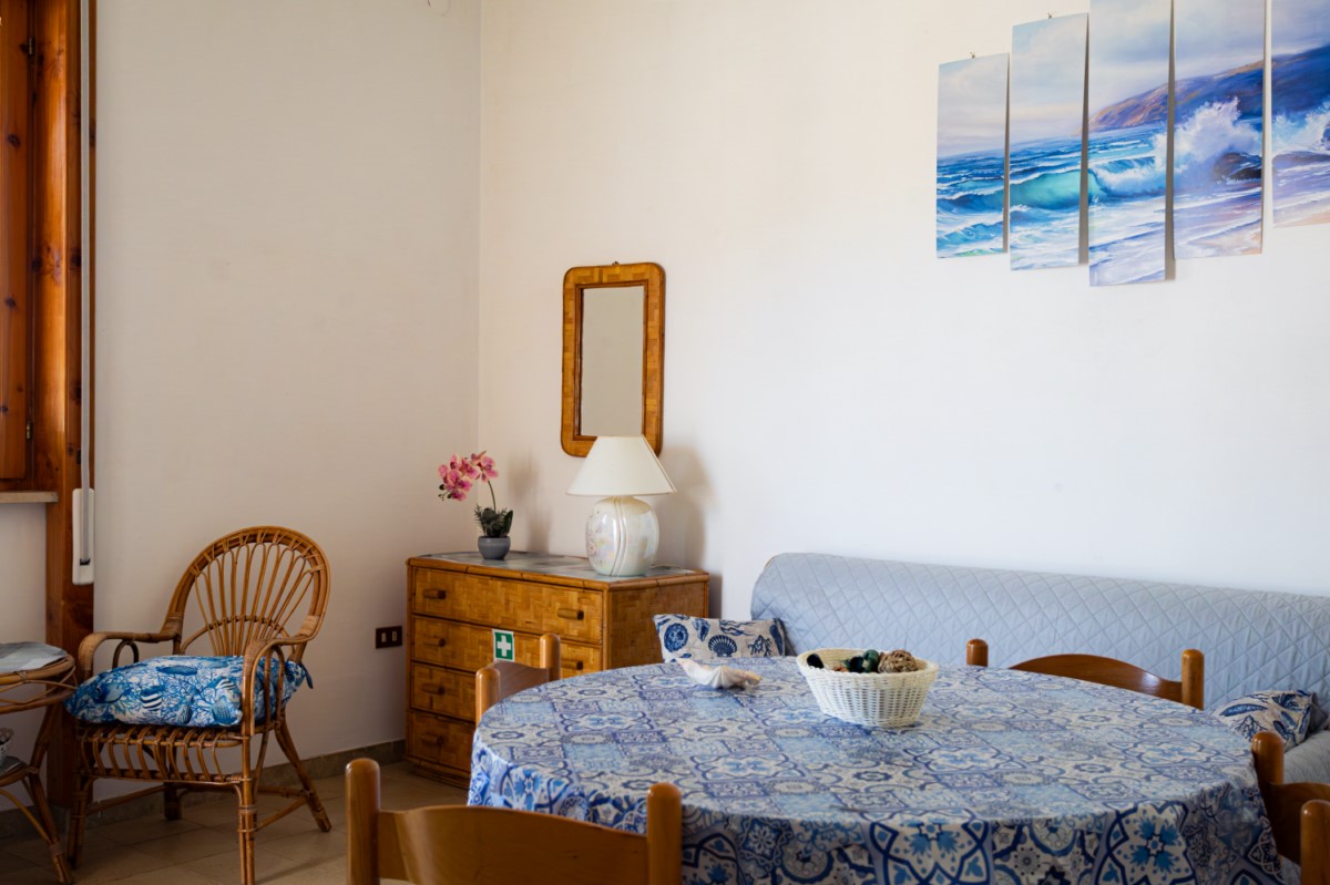 La villa è composta da soggiorno con divano letto, cucina, 2 camere da letto, una matrimoniale e una doppia, 1 bagno completo con doccia.