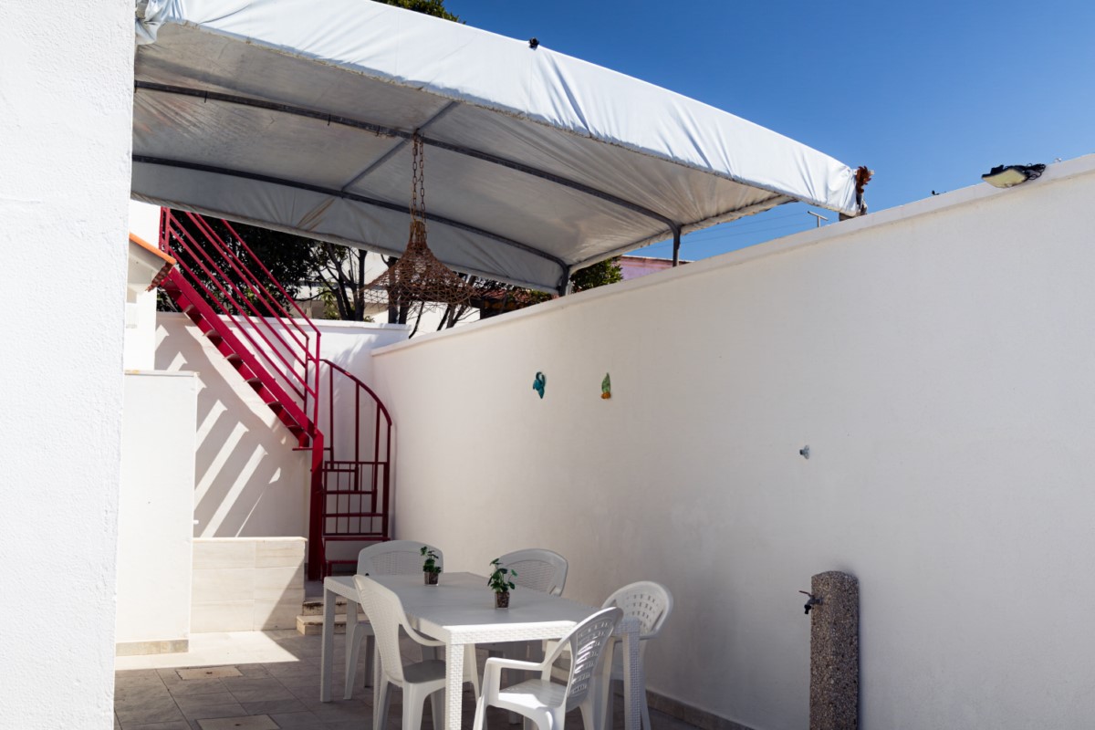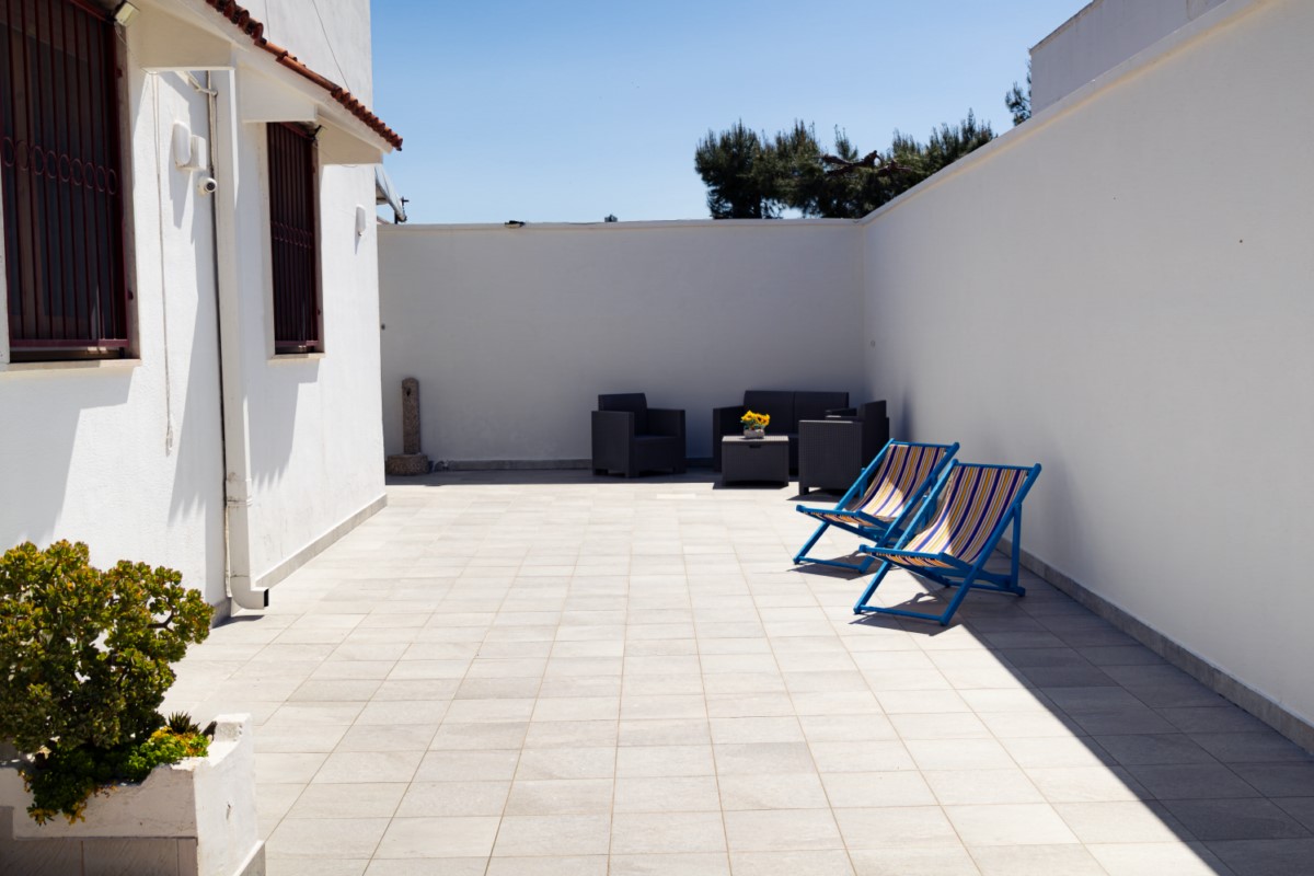 La villa dispone di spazio esterno pavimentato, attrezzato con arredo da giardino per poter cenare all'aperto. Ideale per famiglie, coppie e amici, per una vacanza a due passi dalla spiaggia più bella del Salento.