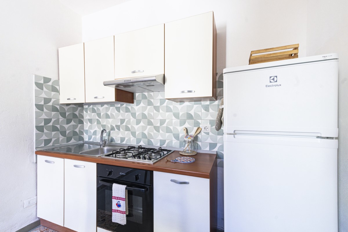 Perfetta per famiglie, coppie o piccoli gruppi fino a 5 persone, Villetta Corallo si sviluppa su due livelli. Al piano terra si trova un soggiorno accogliente con divano letto e TV, una cucina abitabile completamente attrezzata e un bagno con doccia. Al primo piano, la camera matrimoniale e la camera tripla condividono un secondo bagno, offrendo privacy e comodità a tutti gli ospiti.