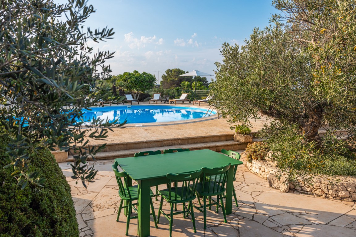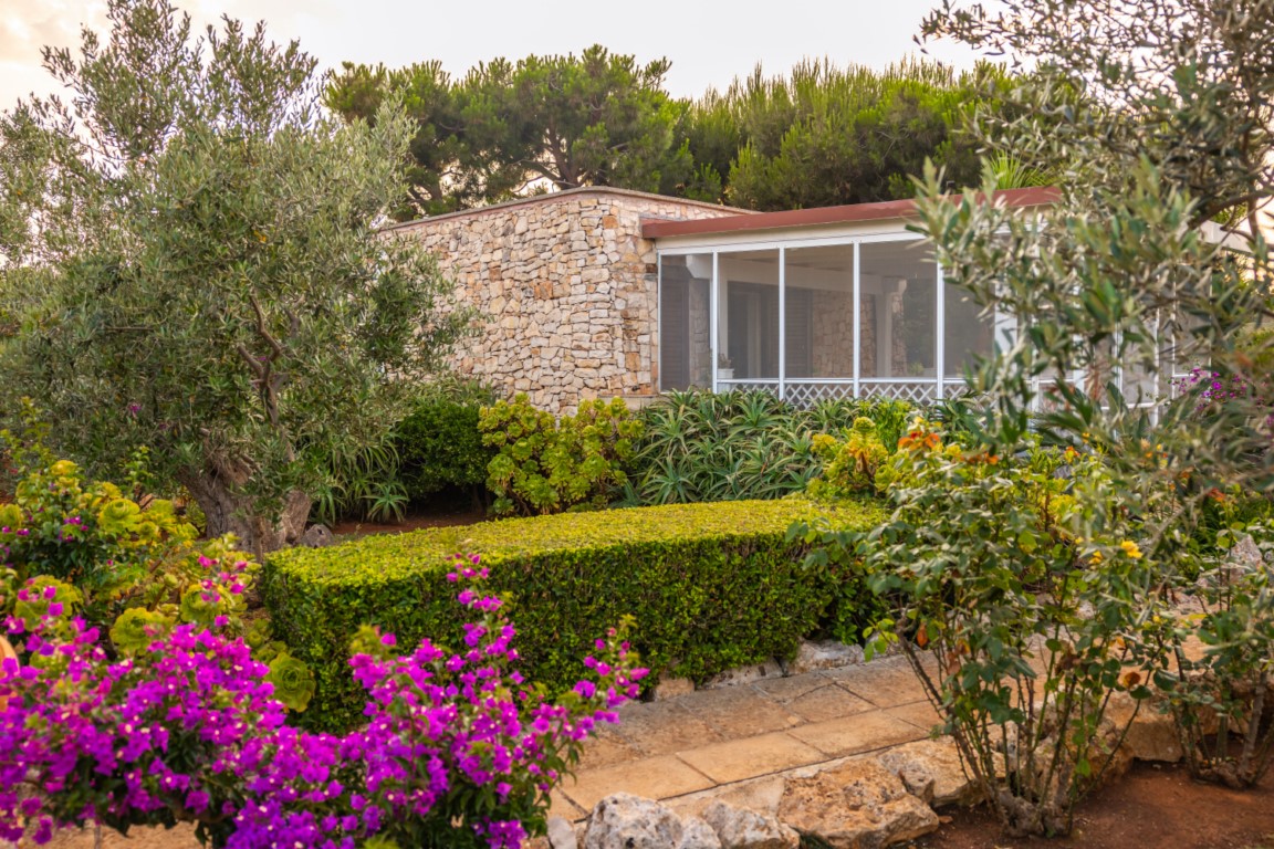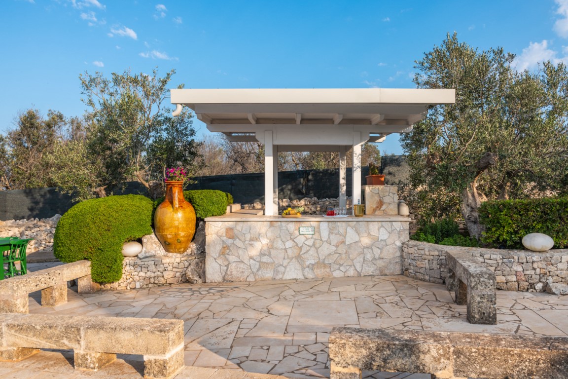 Ogni dettaglio degli esterni è studiato per regalare momenti di contemplazione e piacere sensoriale, in perfetta armonia con il paesaggio salentino.