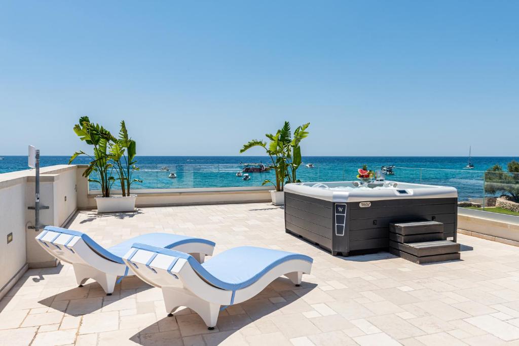Benvenuti a Villa Eva Vista Mare, una straordinaria villa di lusso a Santa Maria di Leuca con piscina riscaldata, idromassaggio Jacuzzi e accesso diretto al mare di Marina di Felloniche. Adagiata su un promontorio naturale tra la baia di Ciardo e la spiaggia di Felloniche, la villa regala una vista mare mozzafiato, tramonti incantevoli e un’atmosfera di quiete assoluta, a soli 200 metri dalla sabbia dorata.