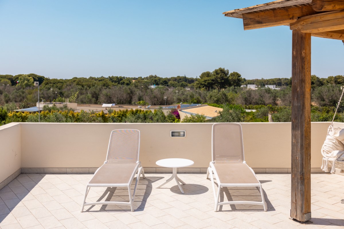 - Veranda riservata con accesso diretto al giardino e alla piscina del residence